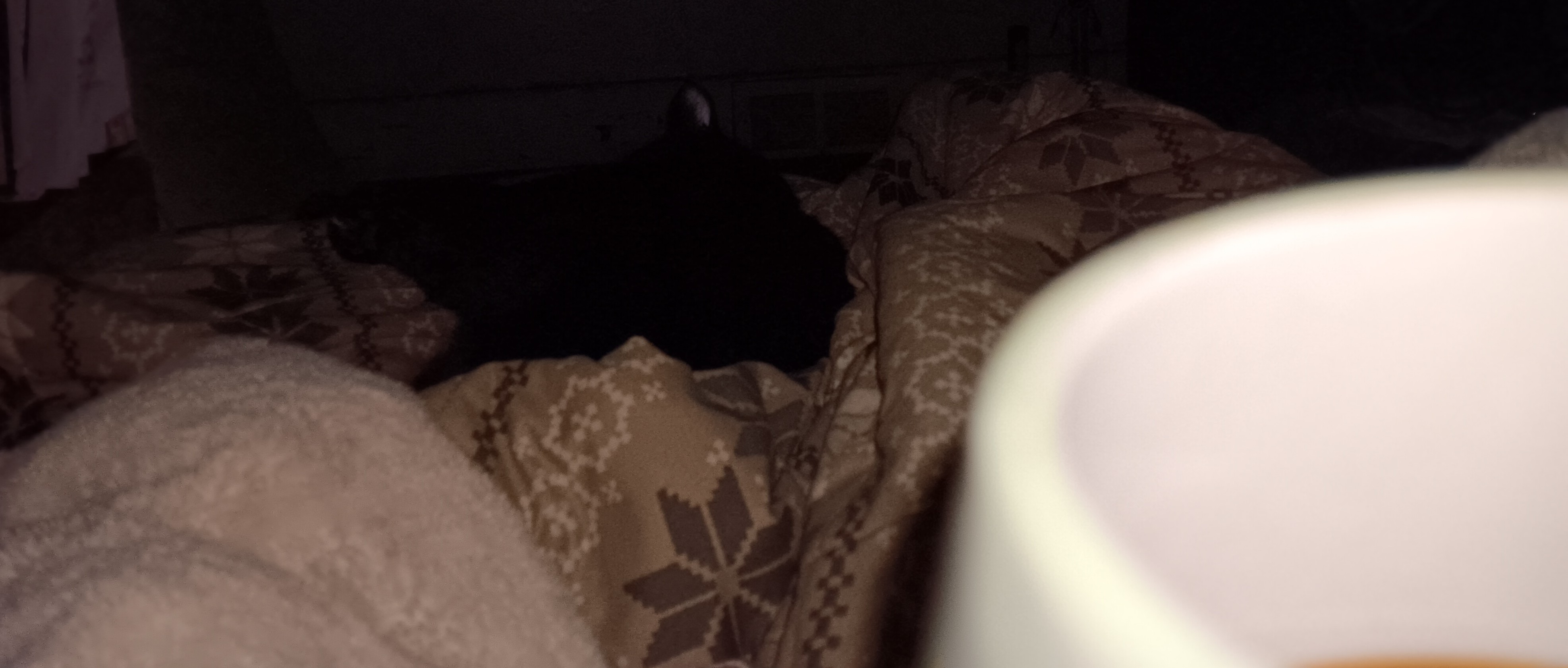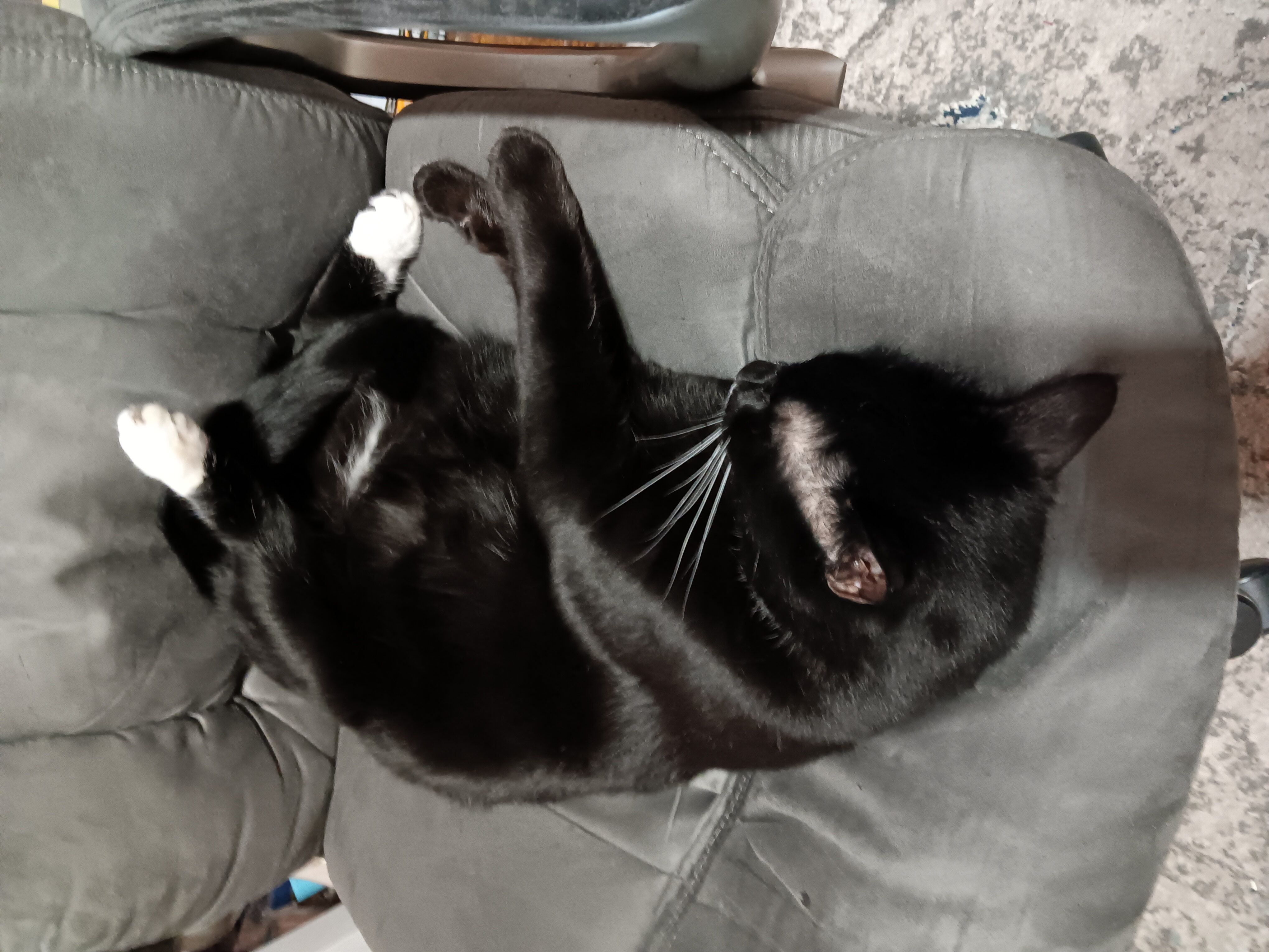 Carter had moved from the chair to where I was, and if you know anything about cats, you know that after a kitty settles down on your legs and purrs until he falls asleep, you are loathe to move a muscle.