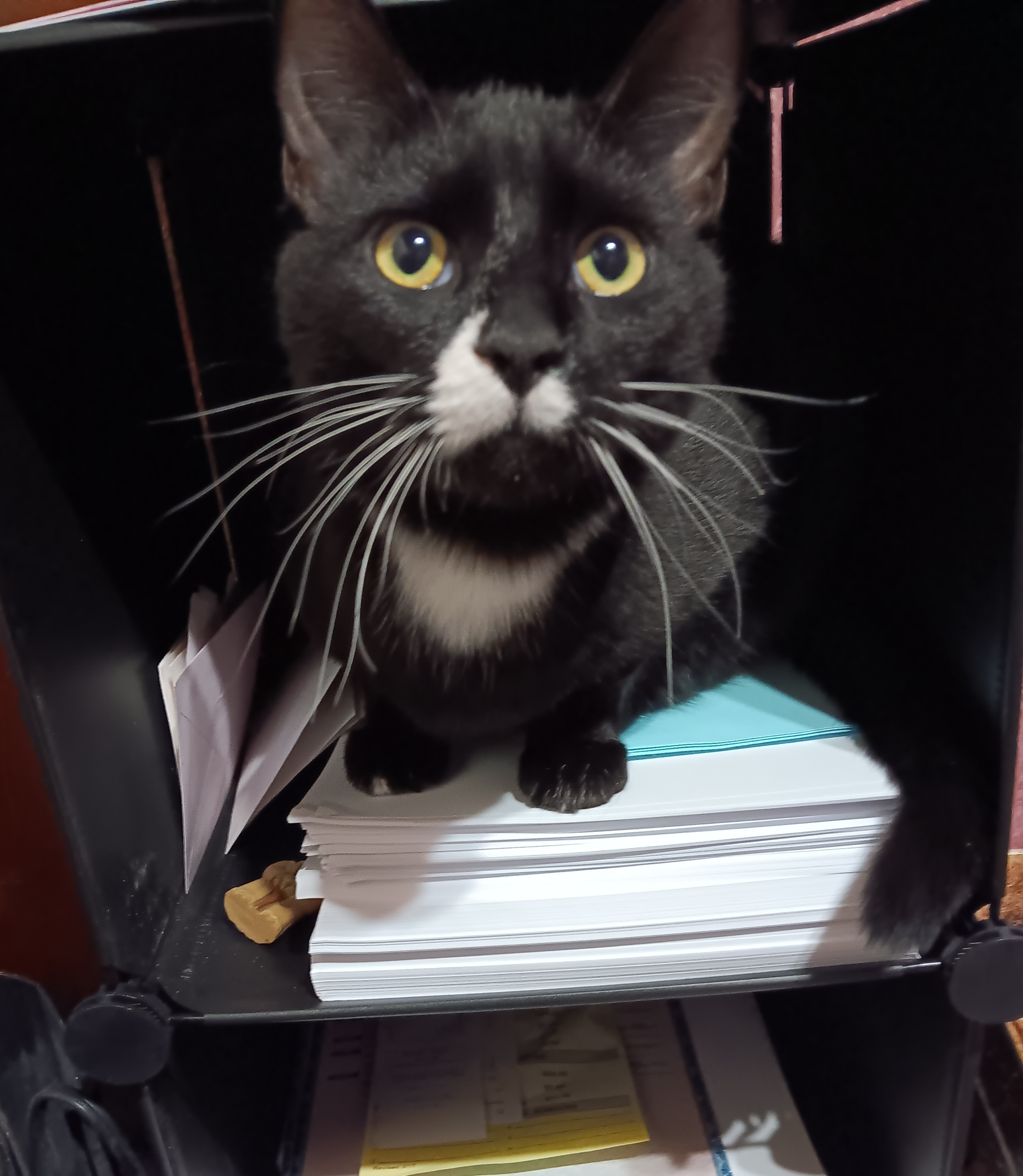 Also, it's not even really “behind”. More like “in close proximity to the top of the killer stairs/on a killer shelf in the clothes closet/in the bathtub where he can do his splayed-paws-Jean-Clawed-van-Damm move”, always starting in the loaf position.