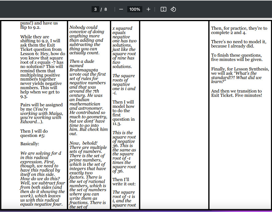 I need you to look carefully at the top of the picture. 2/8. 3/8. This means this is the second page and the third page of an eight page lesson plan.