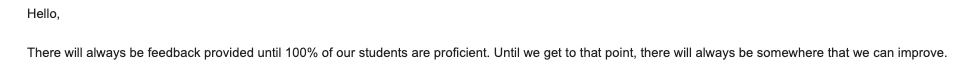If a student asked you, “May I have a copy of the correct response for this question?” and you said, “There is no correct response for this type of question because there is always something you can add!” how long do you think your students will feel encouraged? Do you think that’s an answer that makes you feel successful, or maybe one that will force you to work for some ephemeral goal that you can never achieve?
