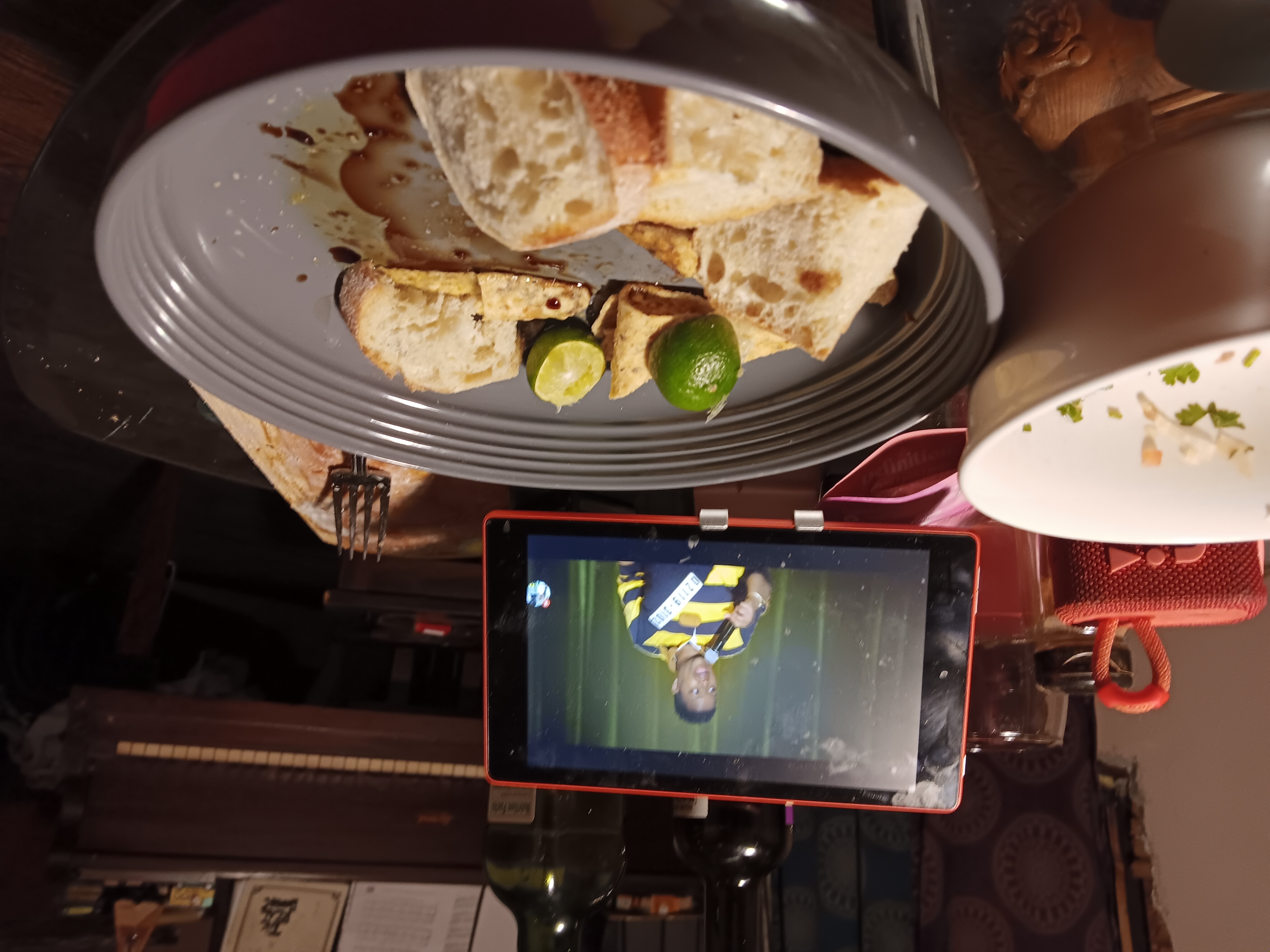 I made a variety of dishes—salmon and pico de gallo and bread with olive oil and balsamic vinegar and peaches with brown sugar.